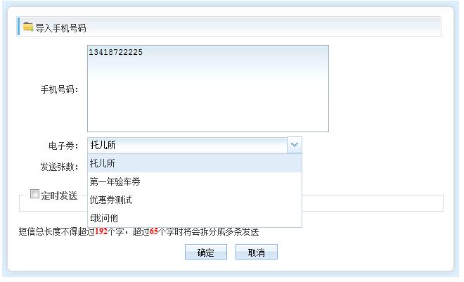 2、發送“電子券”:既可向系統內的老會員群發電子券,也可以給散客手機號下發電子券,可通過短信(SMS)等形式下發。