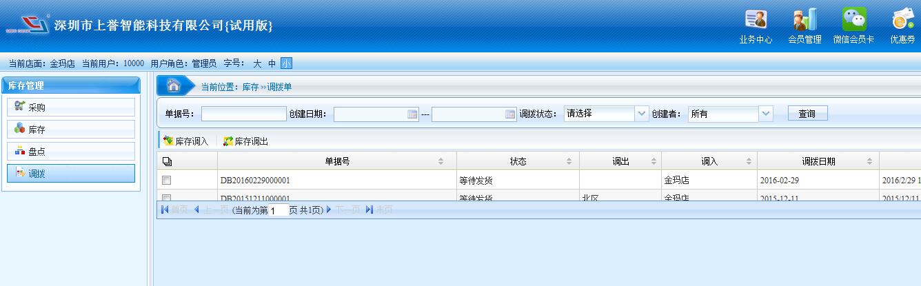 庫存:只要是管理采購單和調撥單、盤點單、導出以及預警設置等。