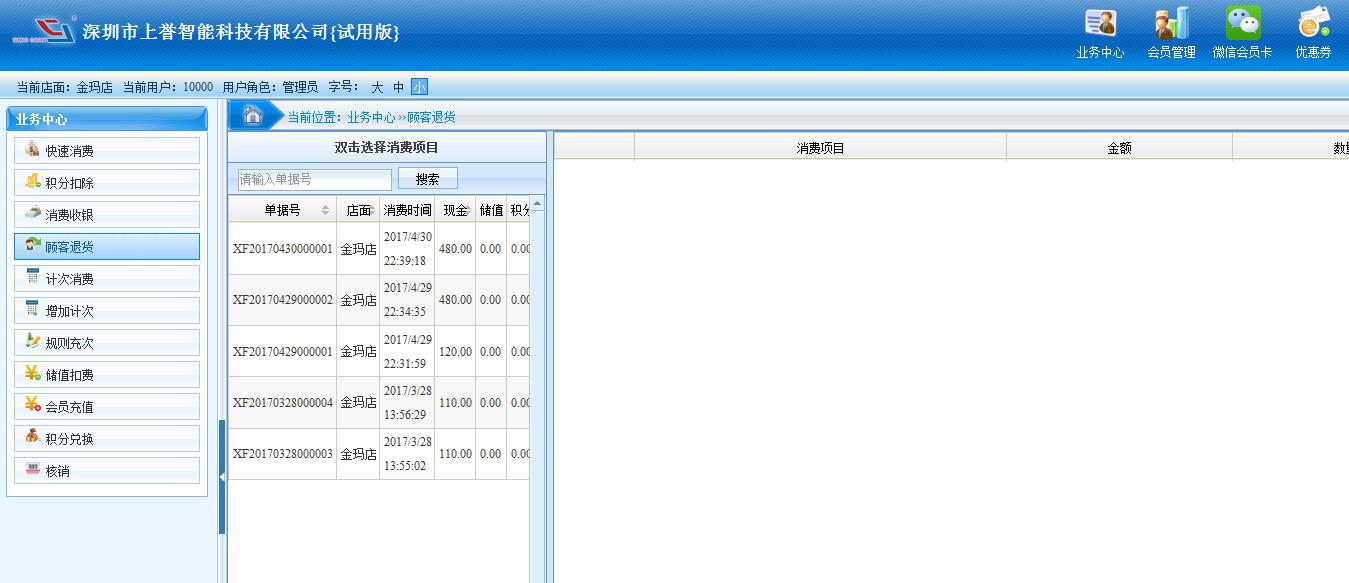 顧客退貨:用于顧客在消費后,商品質量問題或選用的商品不合適等,可使用該功能退貨。