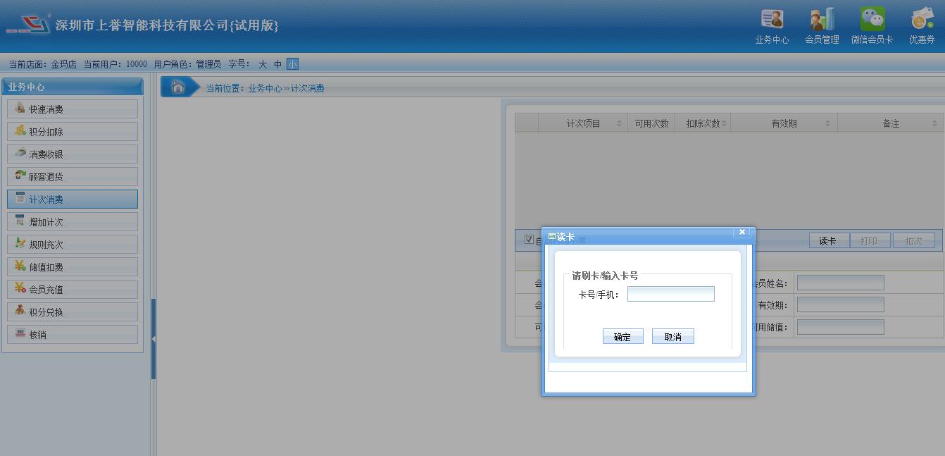 計次消費:用于部分計次會員顧客在消費中可使用計次功能。