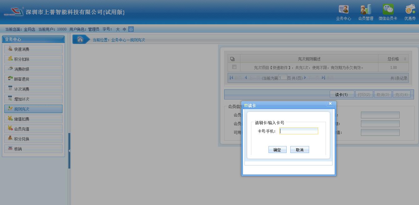 增加計次:用于商品直接增加次數,增加的計次可用來消費等。