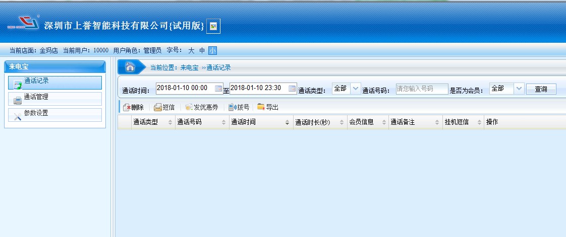 會員管理功能有:通話記錄、通話管理、參數設置等等。 通話記錄:用于和店面電話鏈接綁定在一起,已經方便老板管理會員信息及情況。
