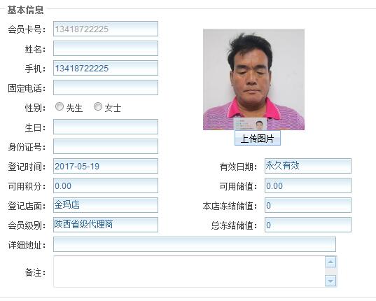將身份證放到閱讀器上,軟件自動將姓名,生日,性別,籍貫等信息獲取到會員登記界面,無需手工填寫。軟件還會自動獲取身份證內的相片,后續會員刷卡時,可自動顯示照片。