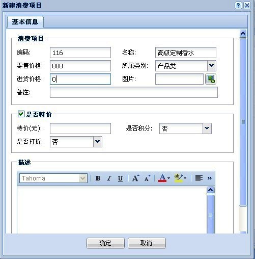 消費項目是作為會員管理軟件的基本功能項,可添加產品并設置產品類別,價格,折扣規則,積分規則,以及是否為特價商品等。