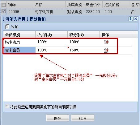 4、設置消費項目的積分比例: